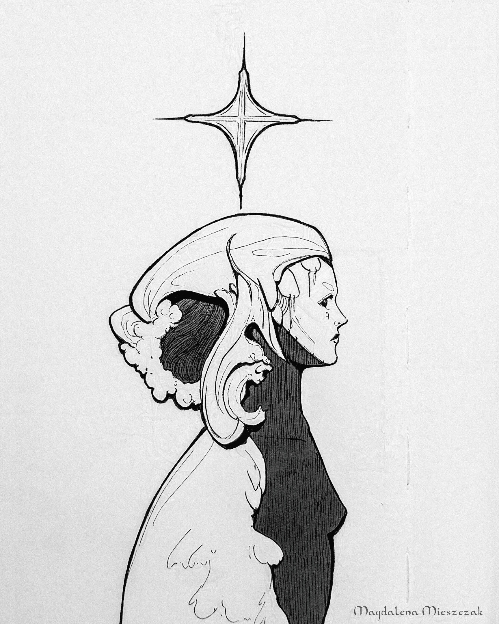 "Sapphire" - inbook artwork for a TTRPG project "Riding the Para-cosmic"